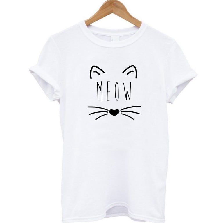 Dames los T-shirt voor vrije momenten. Het heeft korte mouwen, een ronde hals en een kattenprint.