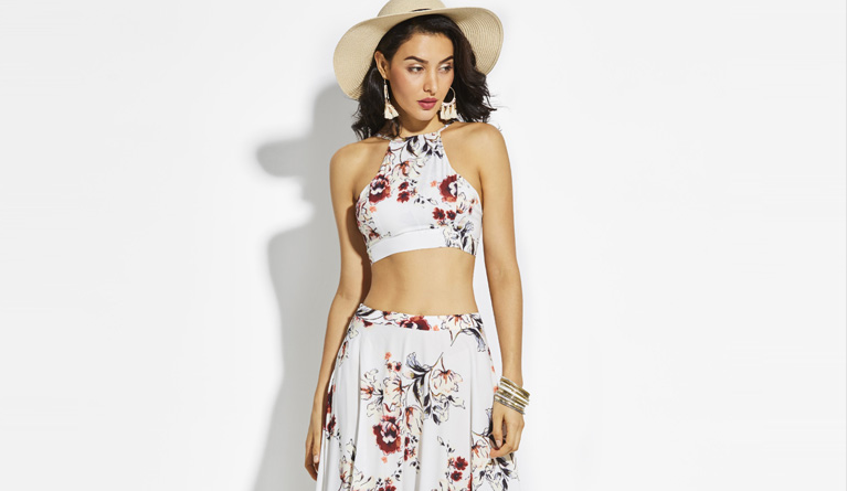 Dames stijlvolle crop top met bloemenmotief. Ideaal voor zomerse dagen. Frisse witte kleur.