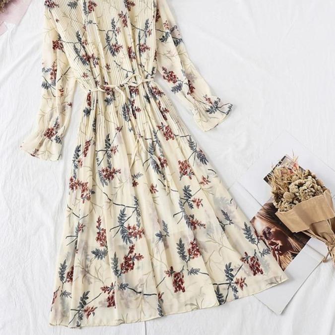 Mooie lichte chiffon zomerjurk voor dames, die een bloemenpatroon heeft of ook in effen kleuren verkrijgbaar is.