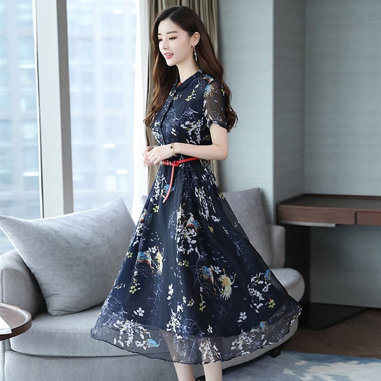 Chiffon damesjurk met korte mouwen.