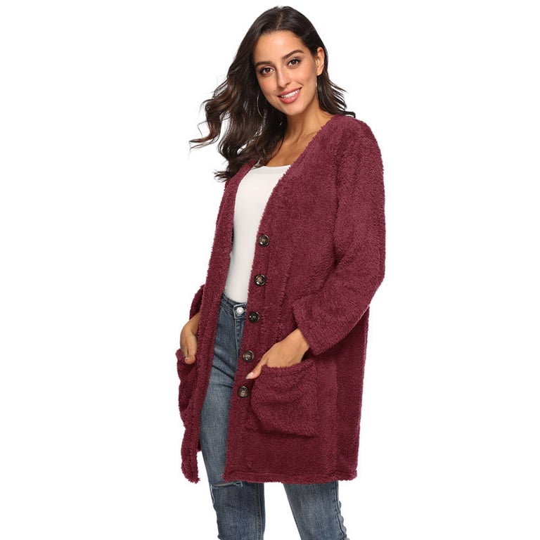 Dames cardigan met knoopsluiting. Losse pasvorm met lange mouwen. Zijzakken. Warme, comfortabele stof. Verkrijgbaar in meerdere kleurvarianten.