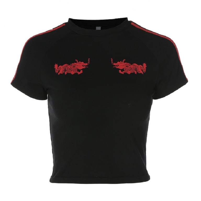 Dames crop top met Chinese draak