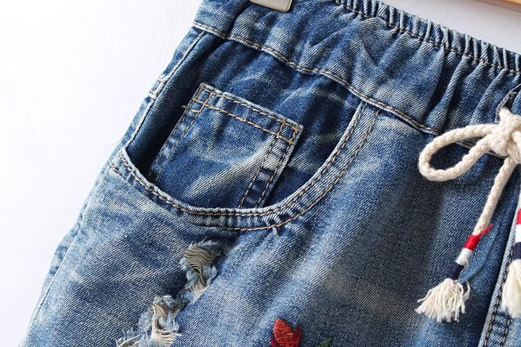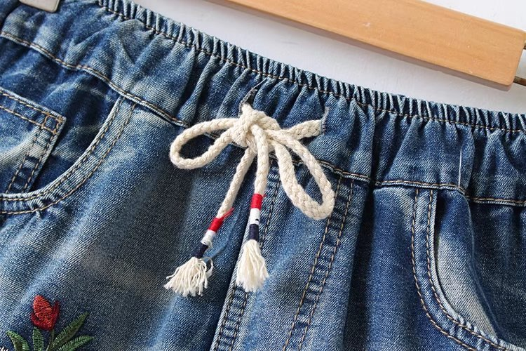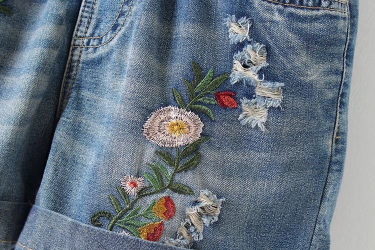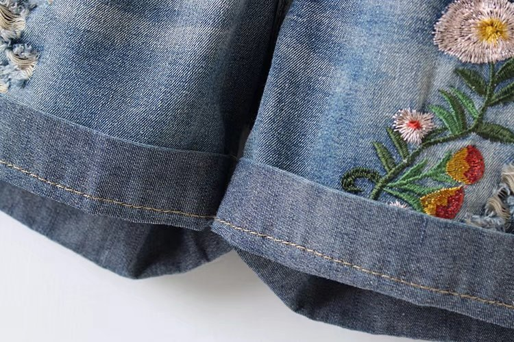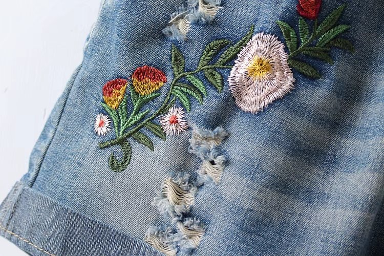 Je zult dol zijn op deze denim shorts versierd met bloemen.