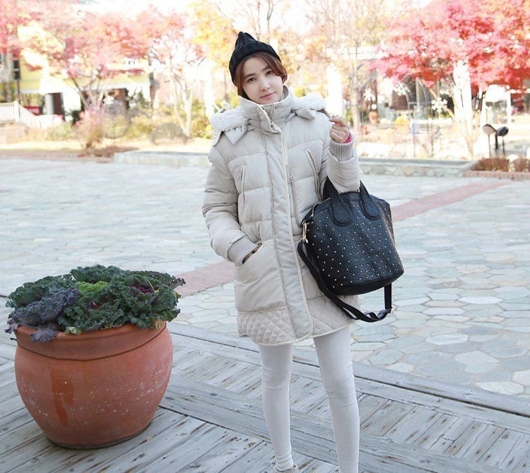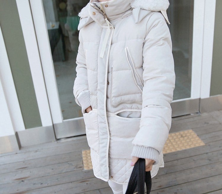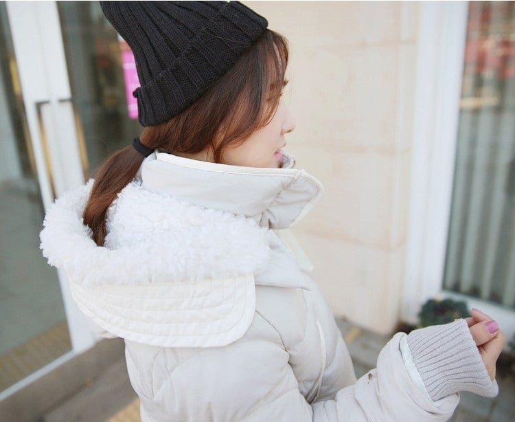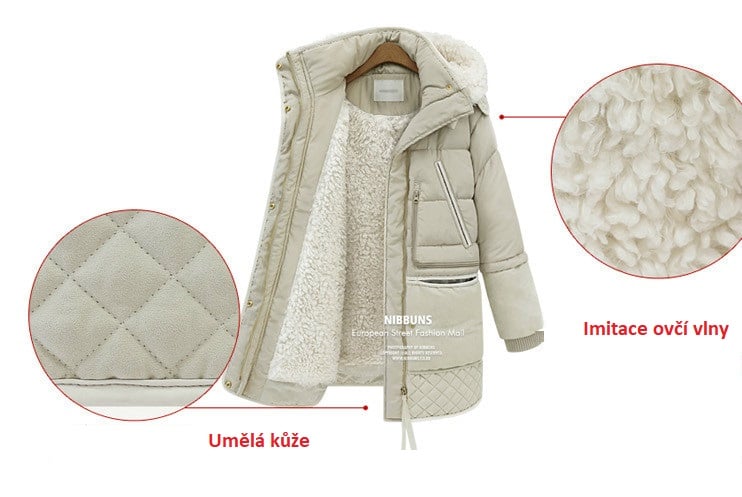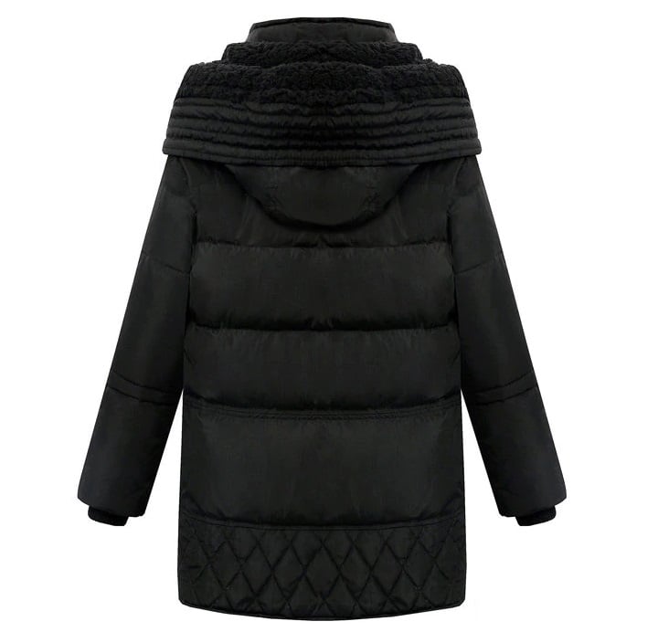 In deze damesjas met eendendons en imitatie schapenwol zult u het in winterse omstandigheden gegarandeerd warm hebben.