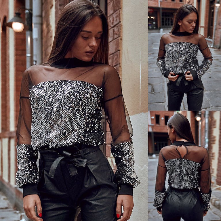 Dames doorzichtige blouse met pailletten