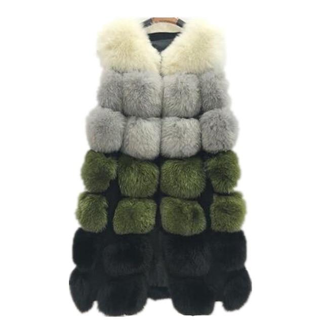 Dames driekleurige vest van zachte kunstbont voor dagelijks gebruik in koud winterweer.