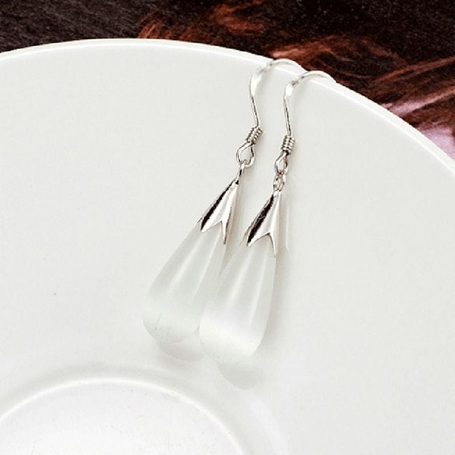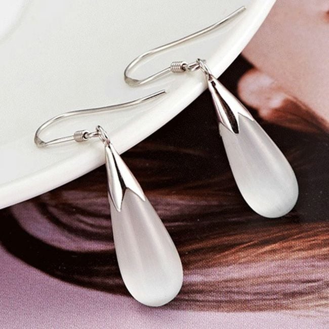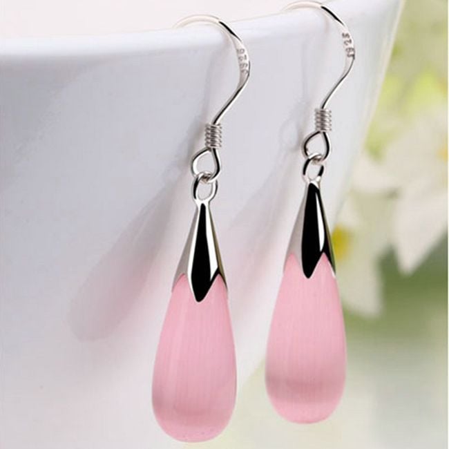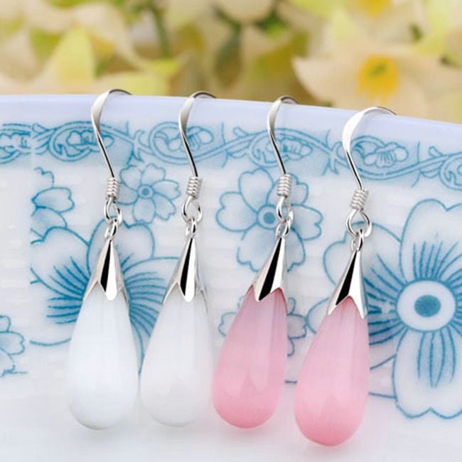 Dames fijne druppelvormige oorbellen geschikt voor dagelijks gebruik. Verkrijgbaar in wit en roze.
