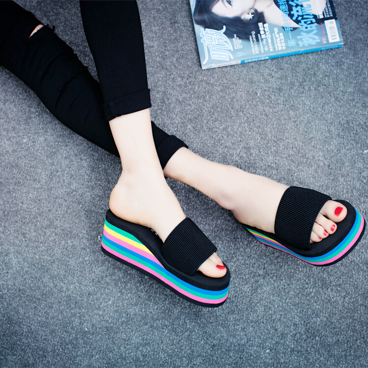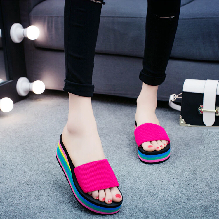 Deze stijlvolle slippers met een gekleurde platform zullen elke vrouw aanspreken.