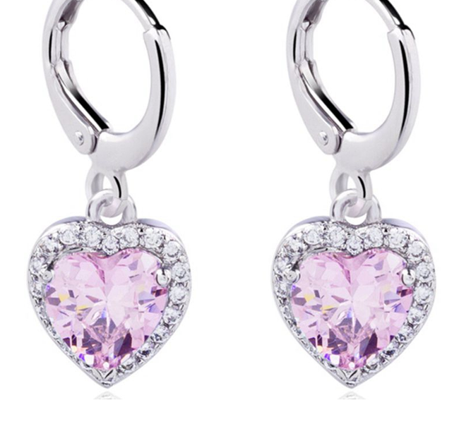 Oorbellen in kristalontwerp met een roze hartje in het midden zijn een geweldig cadeau.