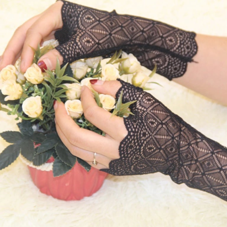 Dames kanten handschoenen zonder vingers, die geschikt zijn voor feestelijke jurken.