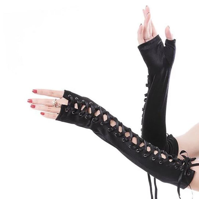 Dames lange handschoenen met vetersluiting