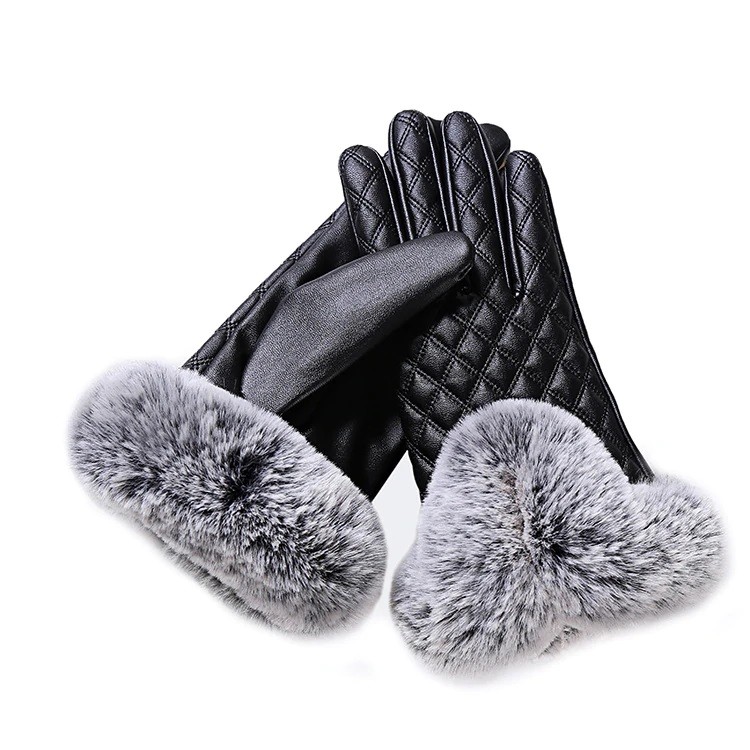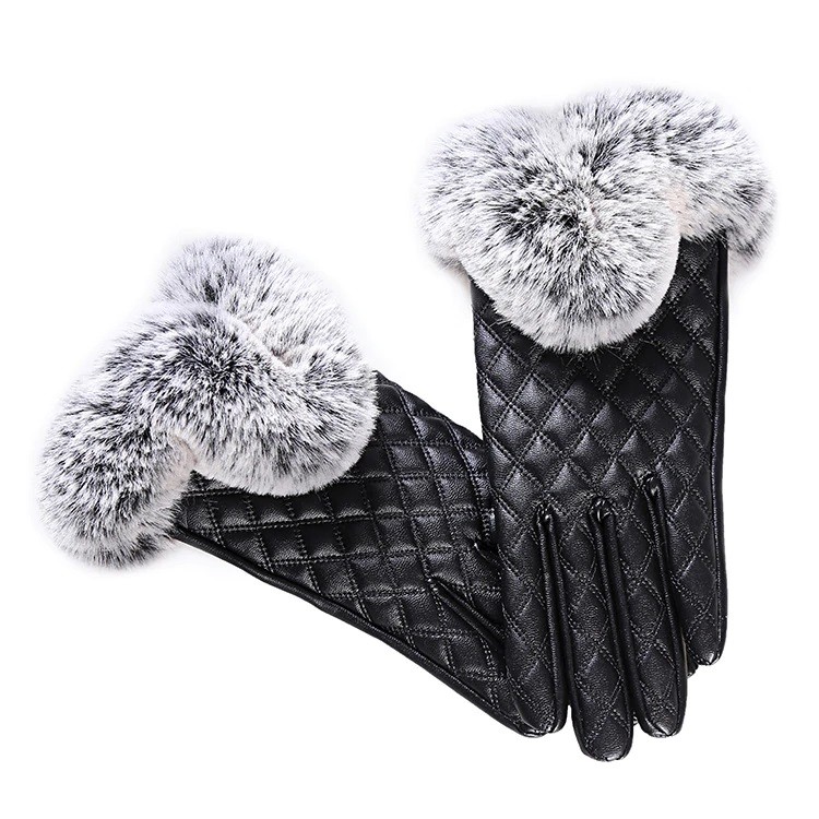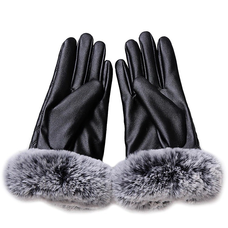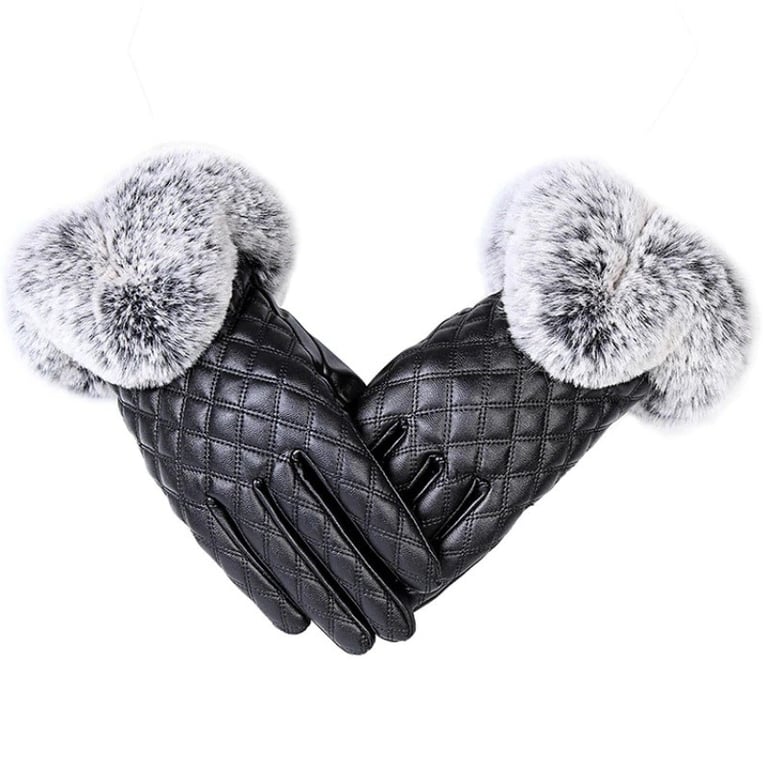 Dames leren handschoenen versierd met stiksels en faux bont, die uw handen beschermen tegen de kou.