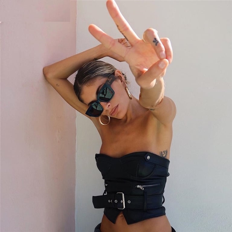 Dames leren top zonder schouderbandjes