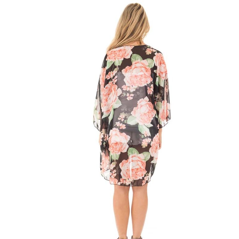 Stijlvolle cardigan met bloemenmotieven van licht materiaal, perfect voor de lente en de zomer – hij zal zeker ook niet op het strand ontbreken. Probeer deze nieuwigheid, waarin je er absoluut geweldig uitziet en bovendien heb je gratis verzending!