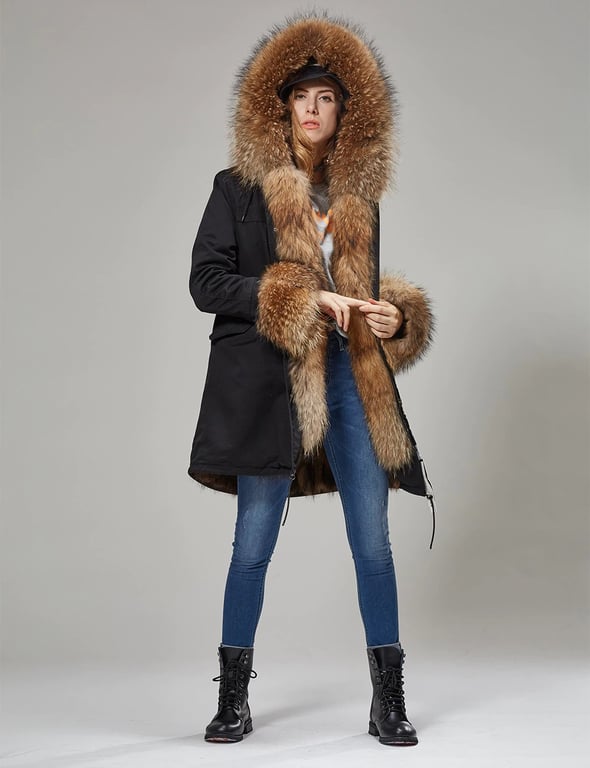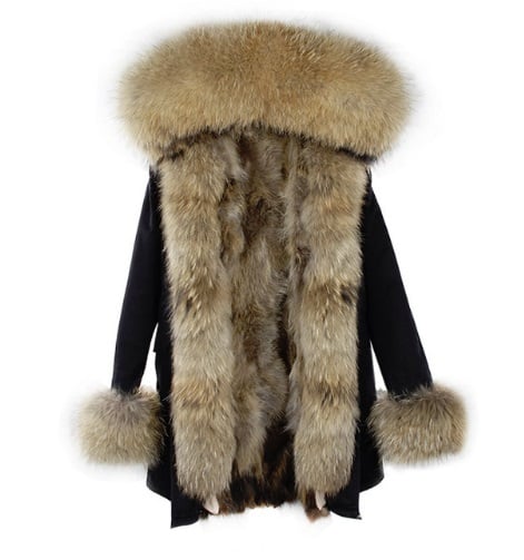 Deze damesjas met bont zal elke vrouw in de winter jaloers maken.