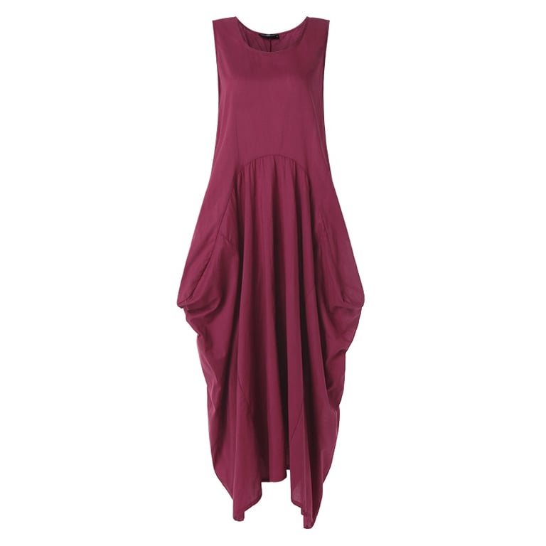 Dames maxi jurk zonder mouwen met zakken.