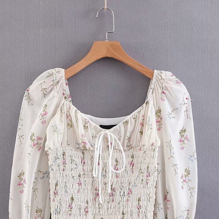 Dames jurk in mini lengte met een delicate bloemenprint.