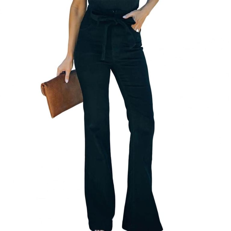 Dames flared jeans met een decoratieve riem.