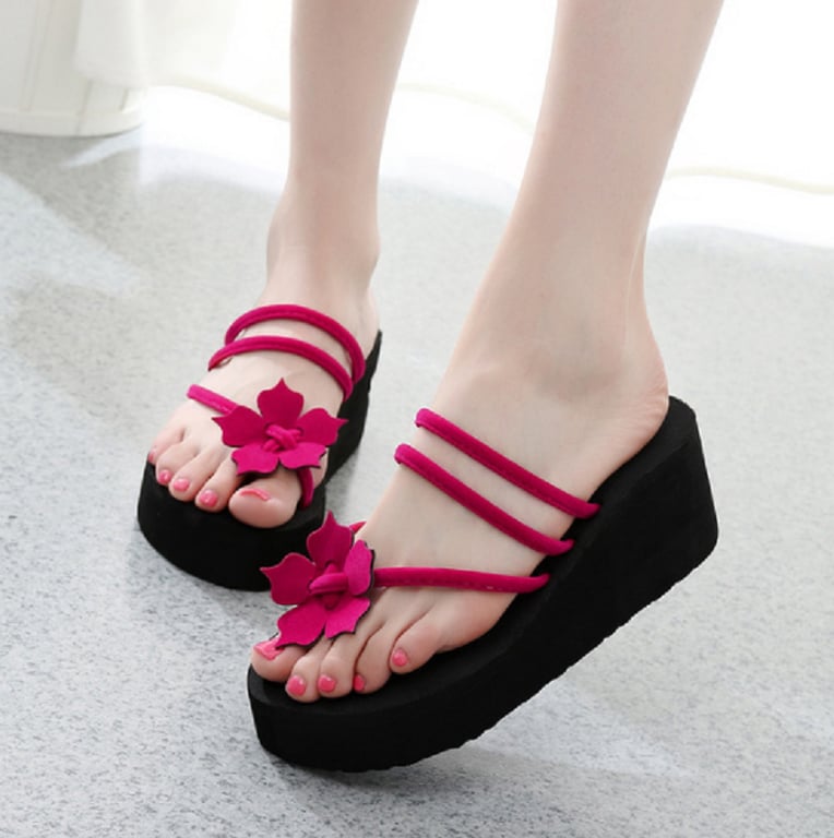 Je zult deze prachtige flip-flops op een platform met bloem geweldig vinden.