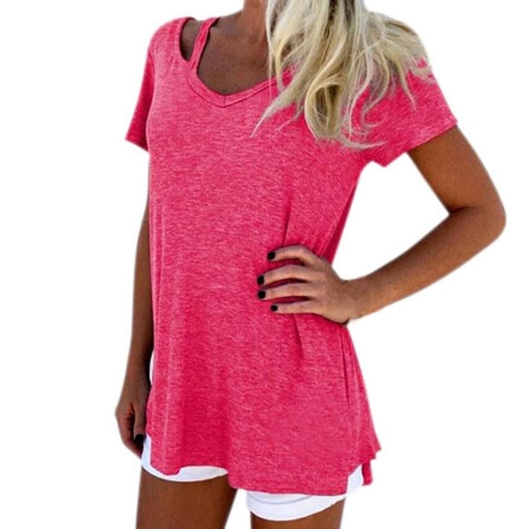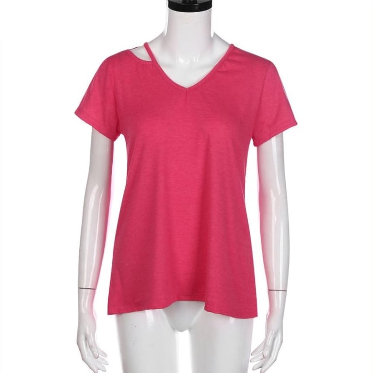 Mooie roze t-shirt van aangenaam materiaal. Het heeft een losse pasvorm, korte mouwen en een zakje. Ideaal voor zomerse dagen.