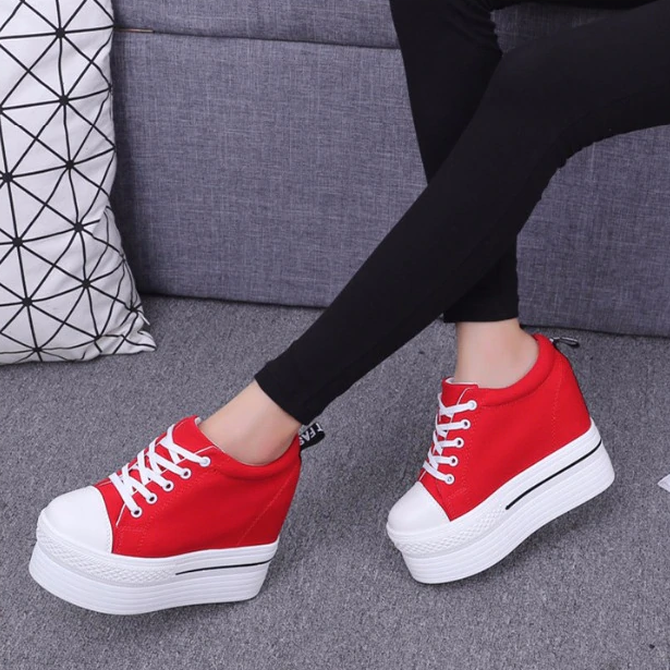 Deze schoenen met hoge plateauzolen zijn comfortabel en aangenaam om te dragen.