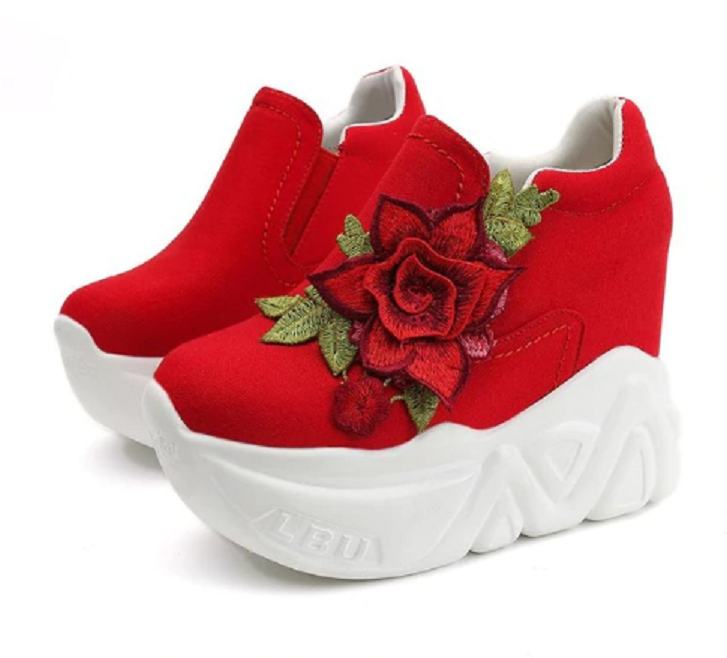 Je zult deze sneakers met hoge zool en bloemenprint geweldig vinden.