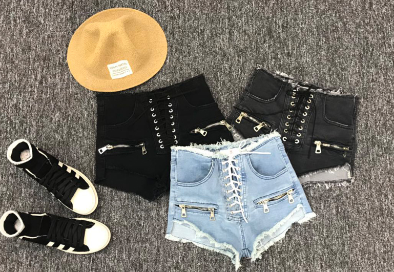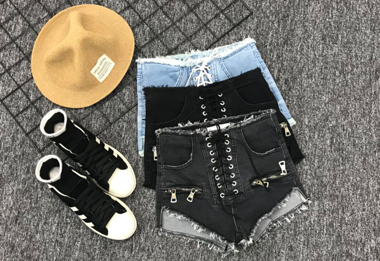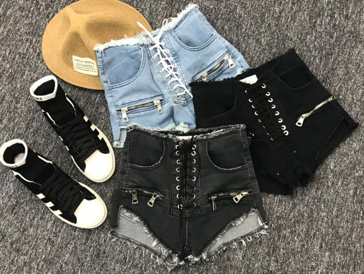 Deze dames denim shorts met veters in plaats van een rits zullen je aanspreken.