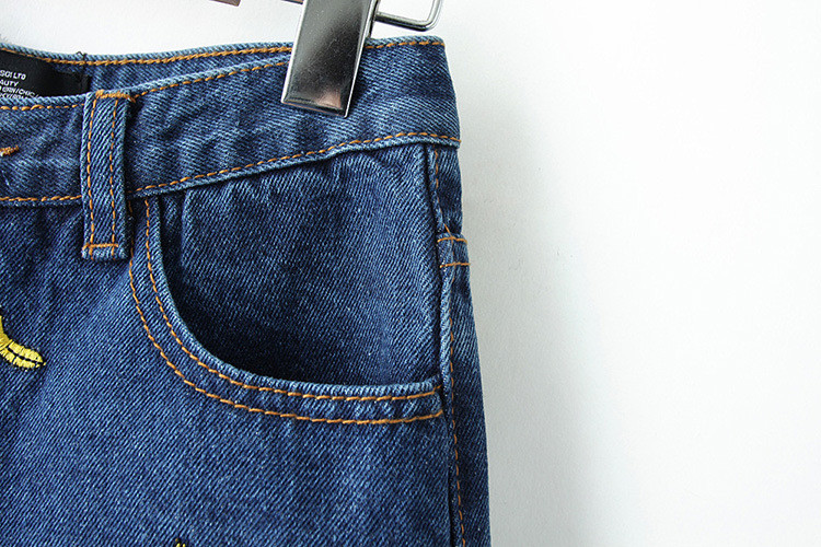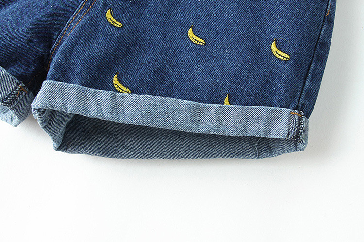 Deze denim shorts met bananen zult u leuk vinden.