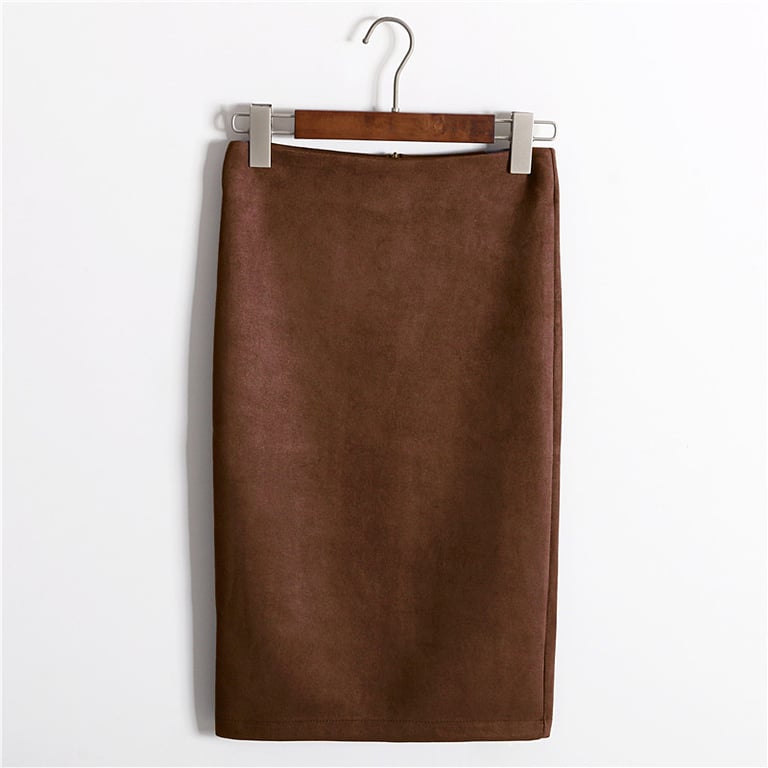 De rok heeft een smal en langer model met een decoratieve en functionele rits aan de voorkant. Geschikt voor zakelijke vergaderingen op kantoor.