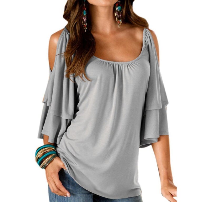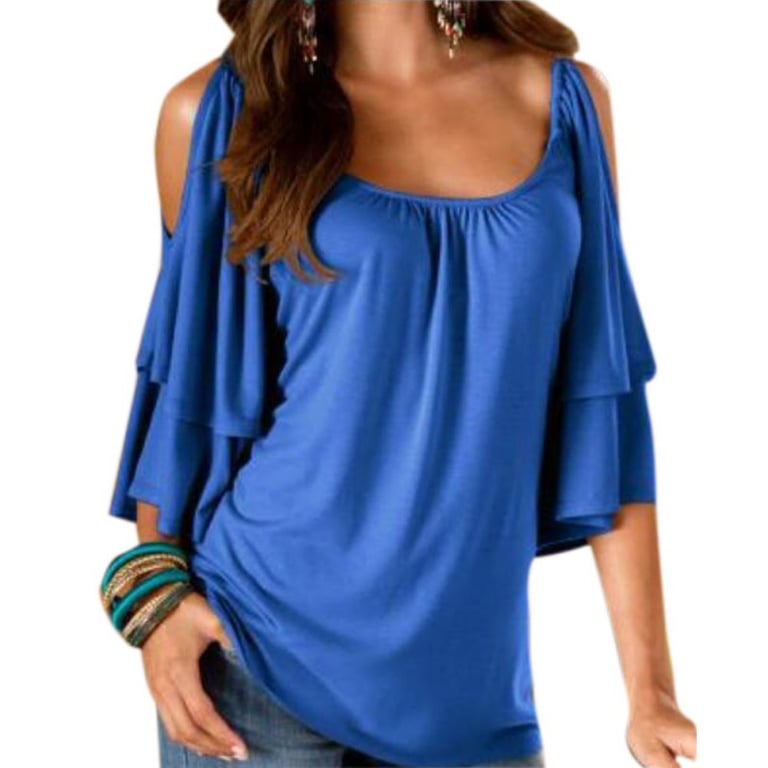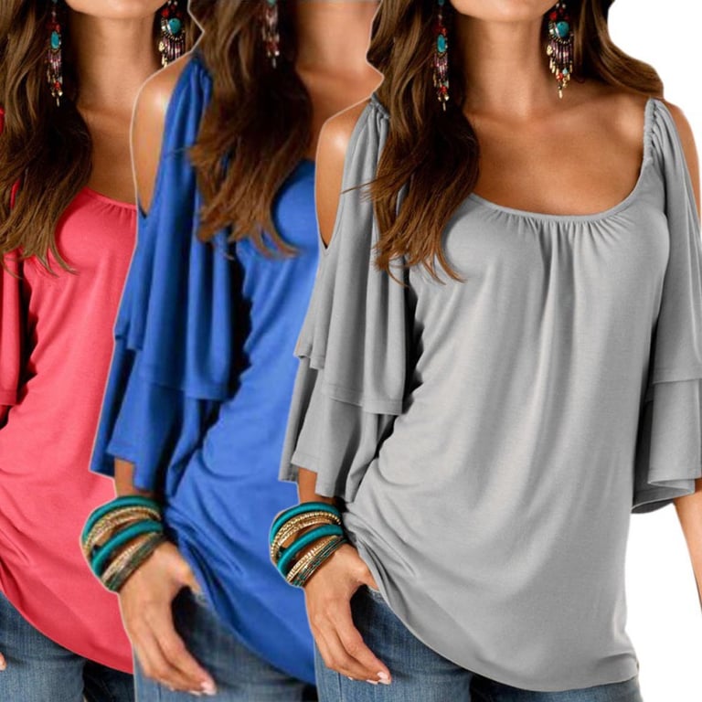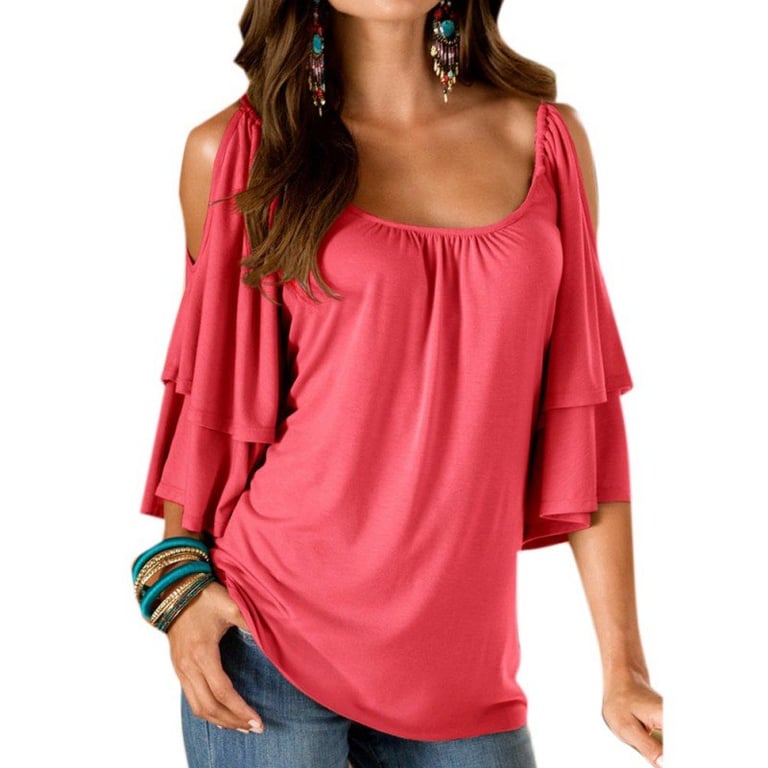 Dames T-shirt met blootgestelde schouders en ruffles