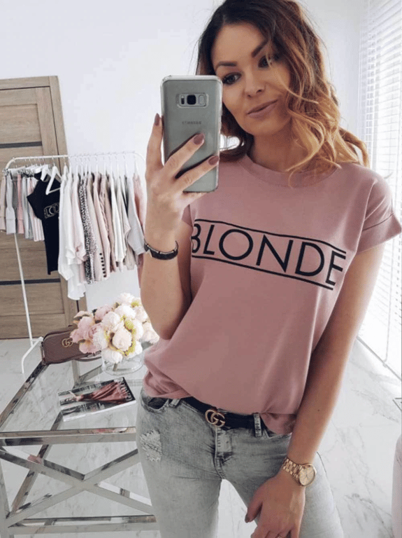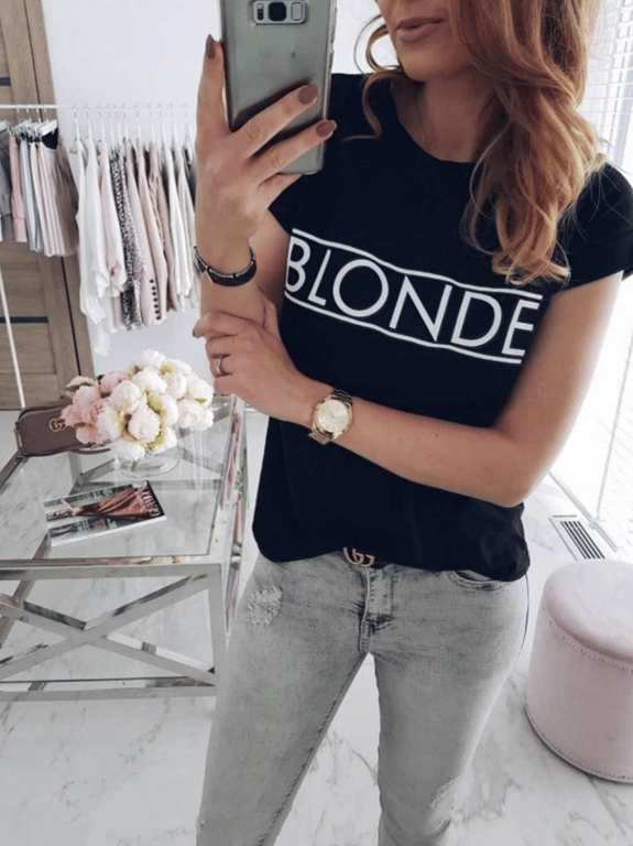 Dames T-shirt met de tekst Blonde