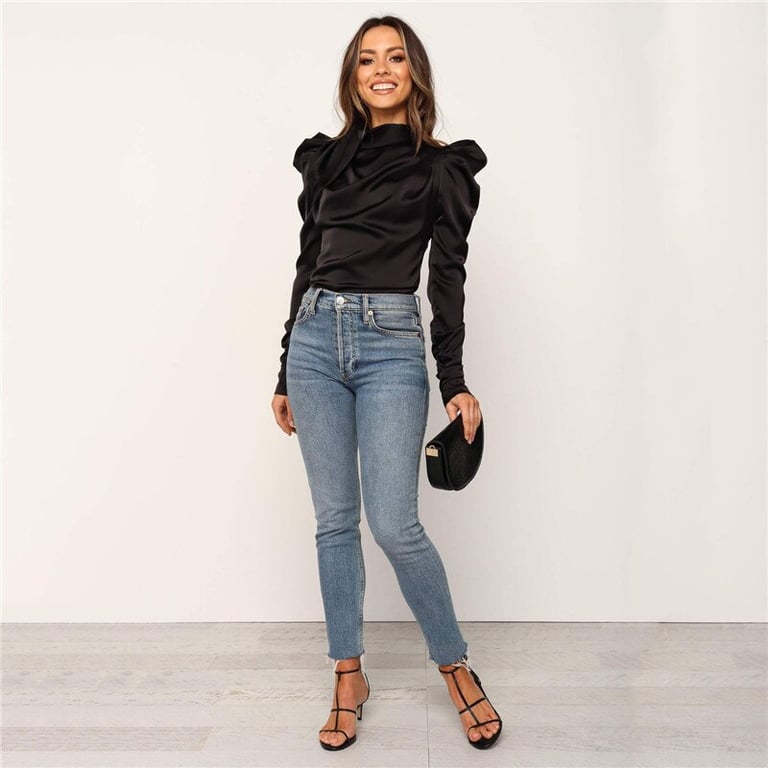 Dames T-shirt met geplooide mouwen