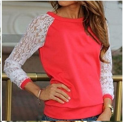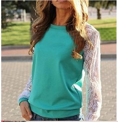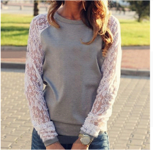 Dames T-shirt met kantmouwen