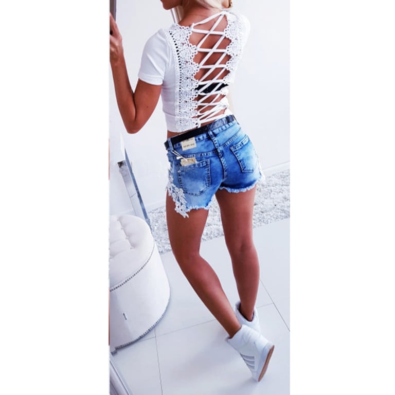 Mooie en stijlvolle dames T-shirt met sexy strik op de rug. Ideaal voor de zomer.