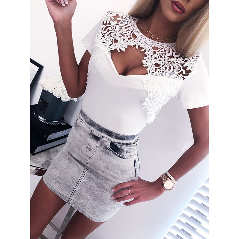 Dames T-shirt met korte mouwen en kantapplicatie