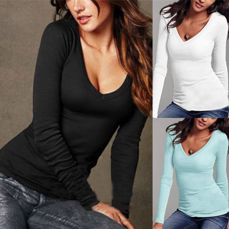 Dames T-shirt met lange mouwen en halslijn