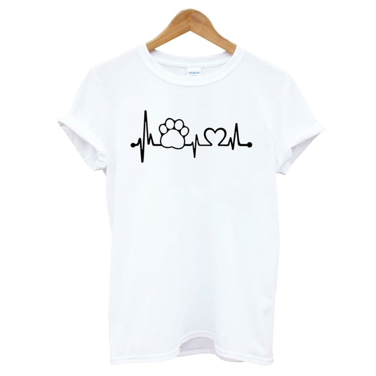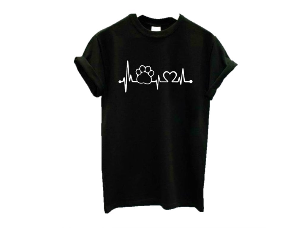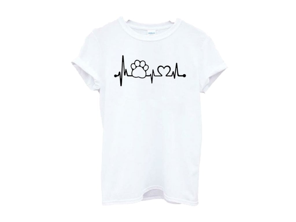 Mooie dames t-shirt met een print van een hartslag en een hondenpoot voor hondenliefhebbers.