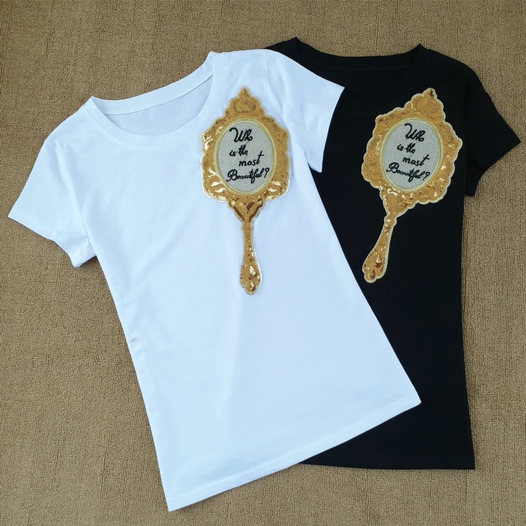 Dames T-shirt met korte mouwen. Het heeft een ronde hals en een spiegelmotief. Ideaal voor vrije tijd.