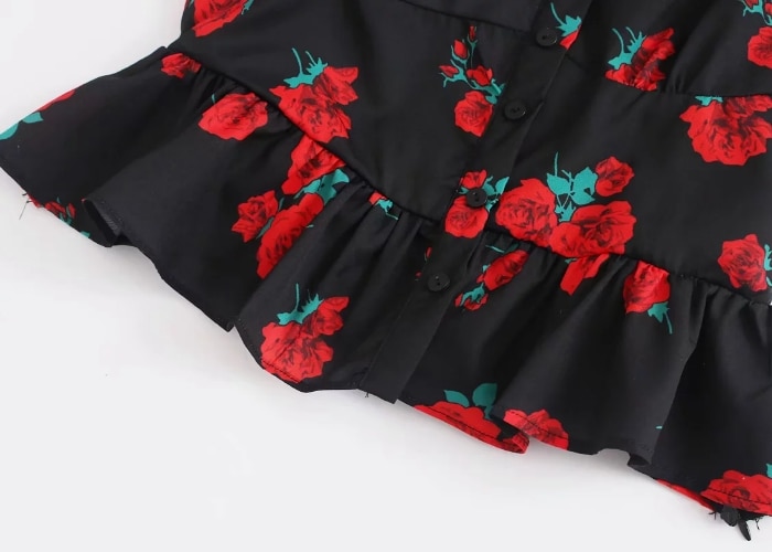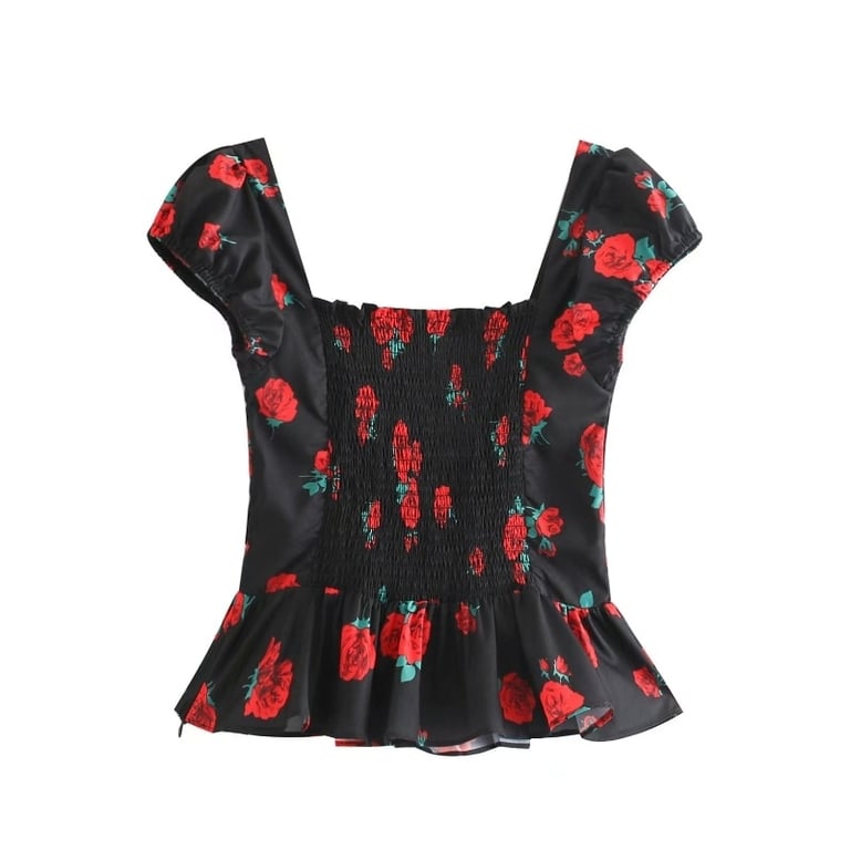 Mooie zwarte top met bloemenprint.