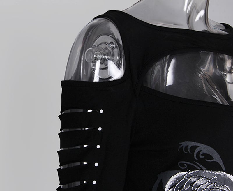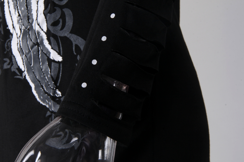 Dit longsleeve T-shirt is origineel, niet alleen vanwege de openingen op de schouders, maar ook vanwege de zeer mooie uitvoering van de mouwen.