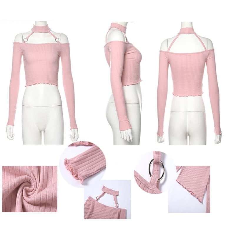 Dames top met lange mouwen en col