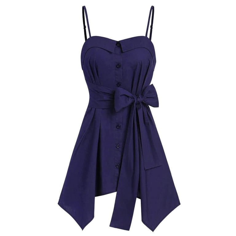 Dames lange top met spaghettibandjes. Sluit met knopen en heeft een strik in de taille. Geweldig voor hete zomerdagen.