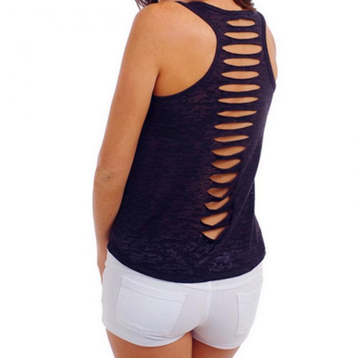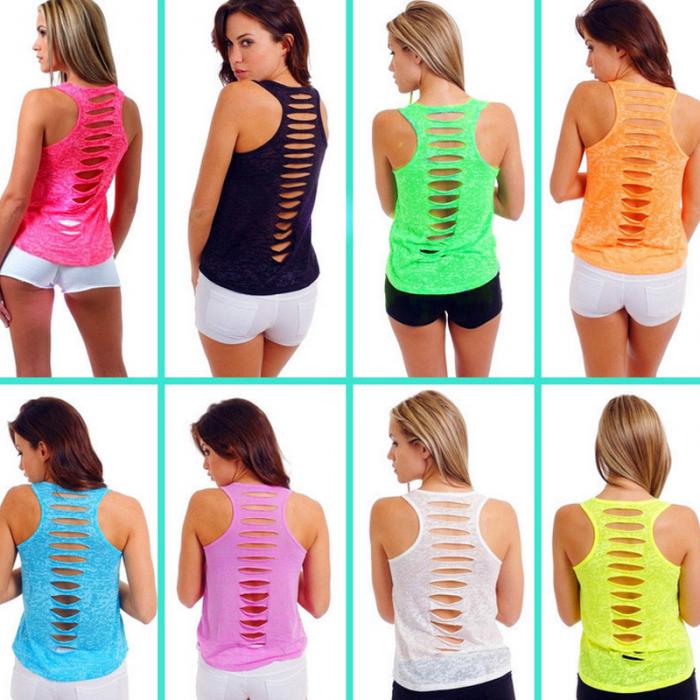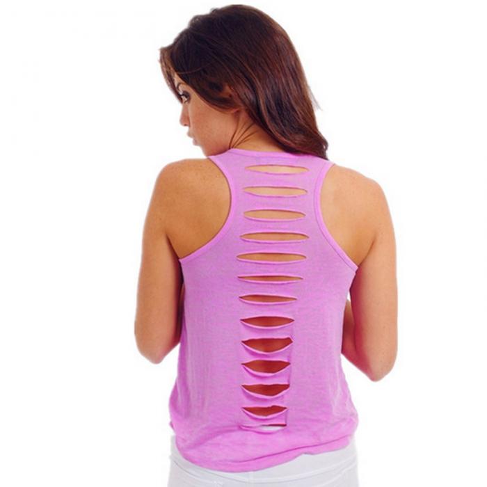Dames zomer top met modieuze uitsparingen op de rug. U kunt kiezen uit prachtige heldere kleuren. Ideaal voor de komende warme zomerdagen.