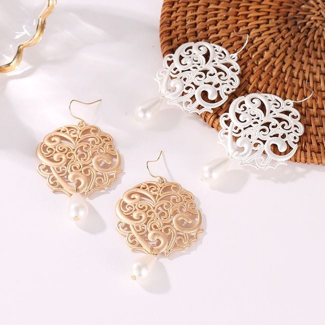 Dames vintage oorbellen met een kunstparel zijn beschikbaar in 2 varianten.