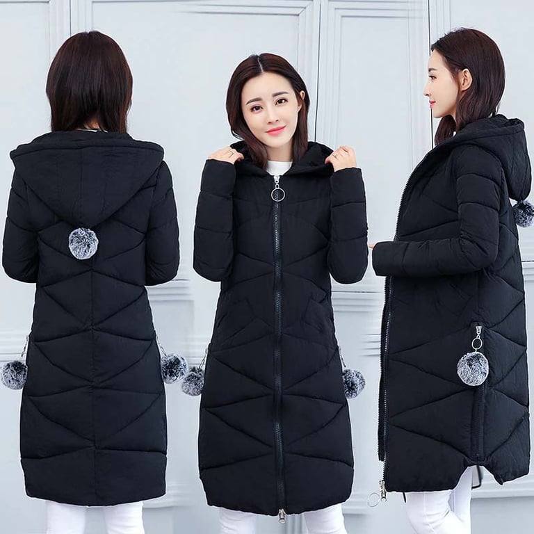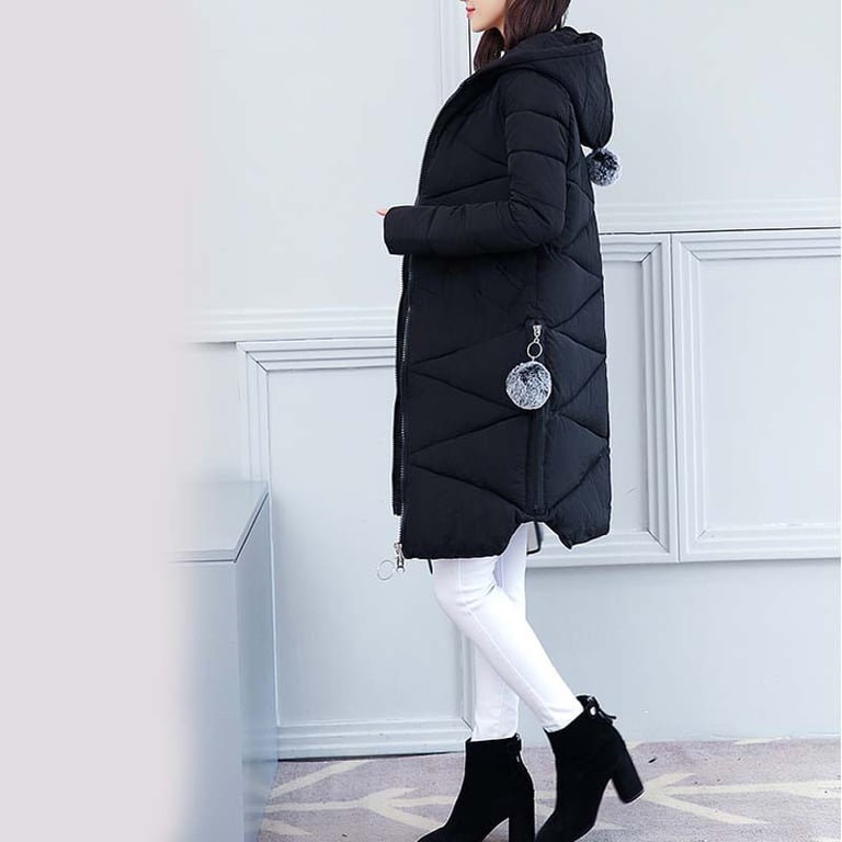 Stijlvolle damesjas met pompons, die je warm houdt in koud winterweer en waarin je er geweldig uitziet!