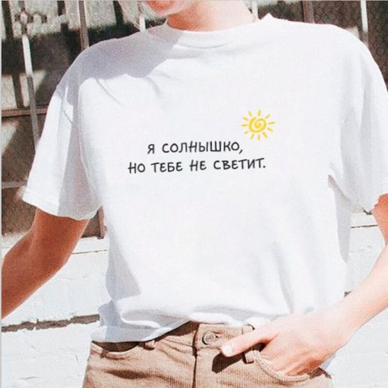 Dames witte T-shirt met het cyrillisch alfabet