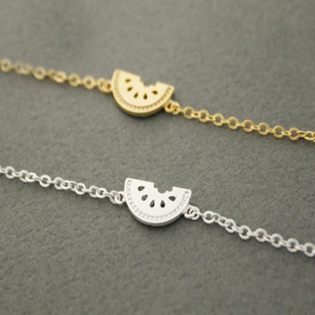 Prachtige minimalistische armband met een klein metalen meloen in twee kleuren.