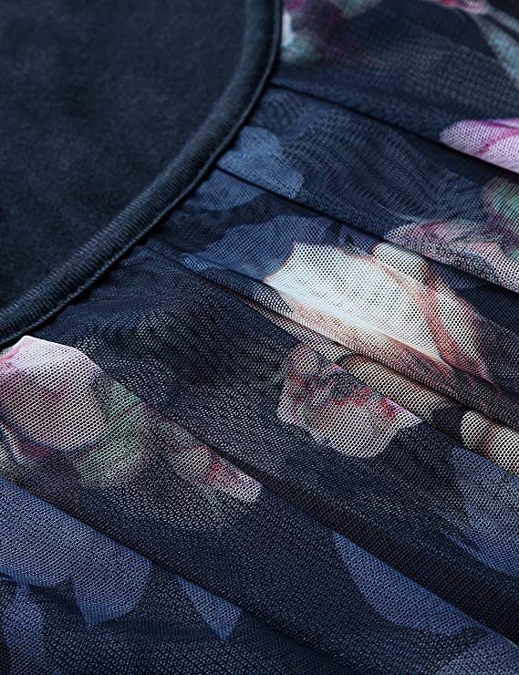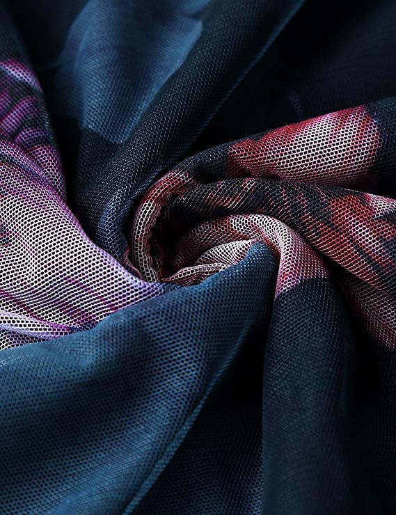 Heeft een bloemenprint en een transparante laag eroverheen.