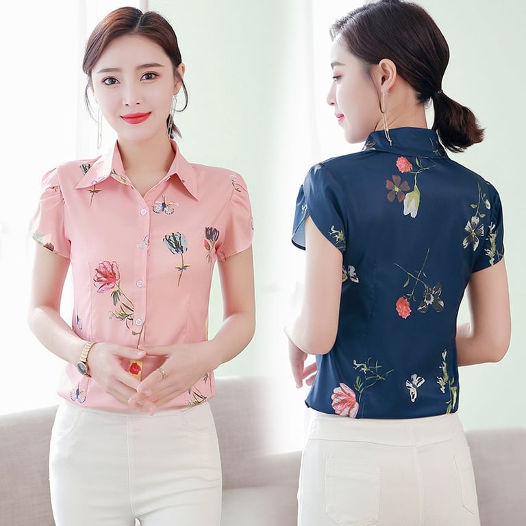Damesbloes met korte mouwen en een klassieke kraag.