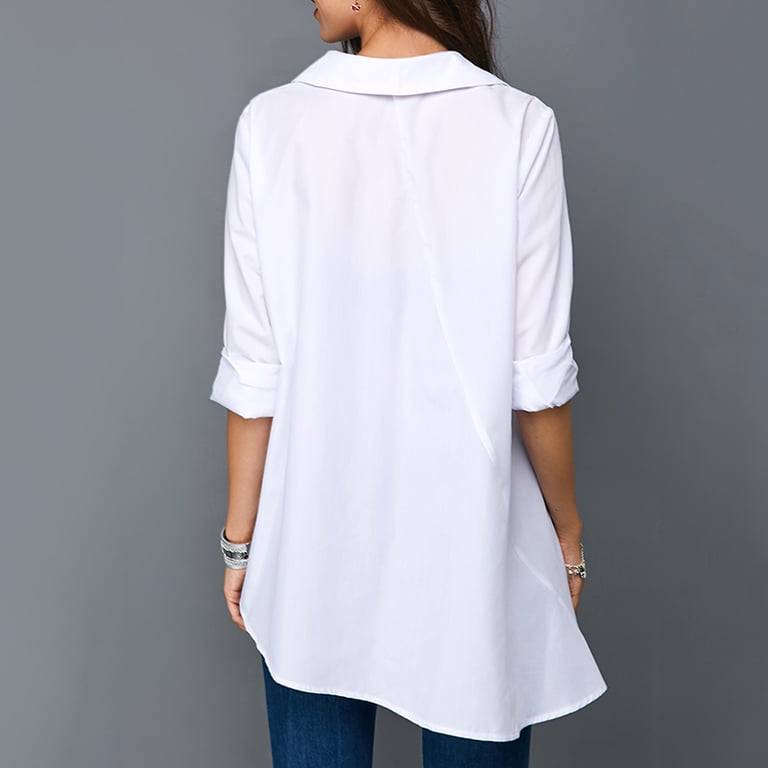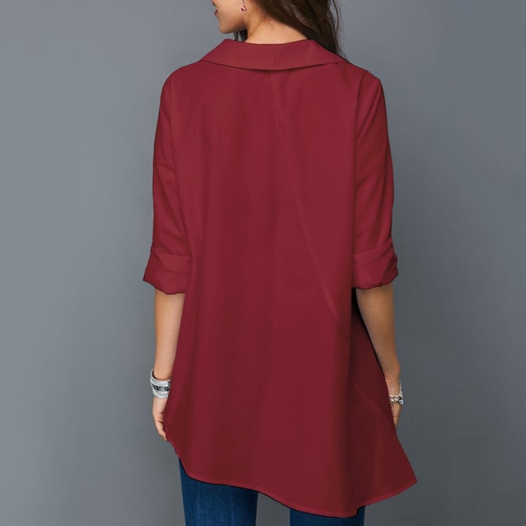 Deze blouse heeft een interessante snit en knopen.